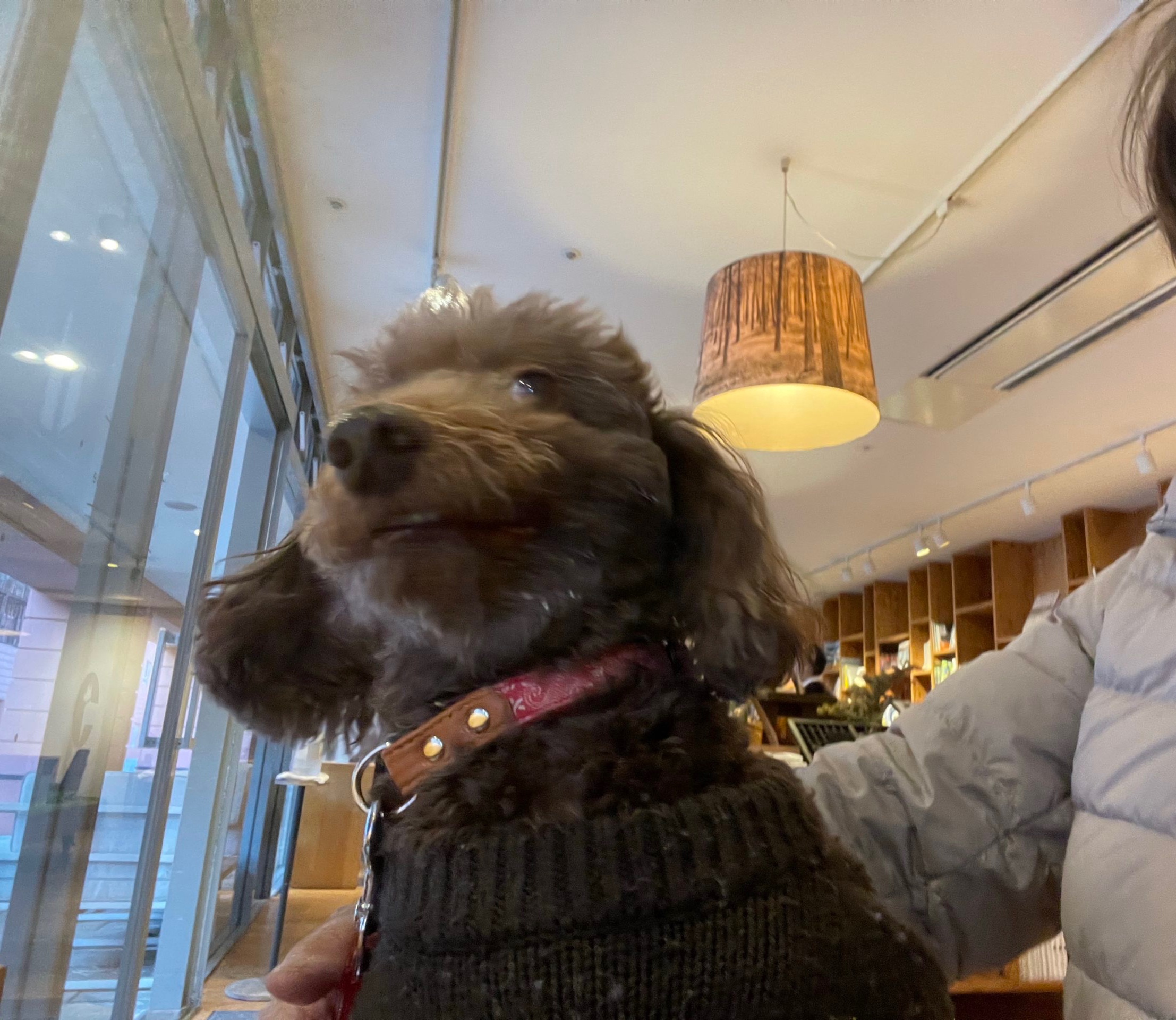 夕方は、5時からワンコOKのブックカフェへ。ショコラも喜んでくれたみたいです。